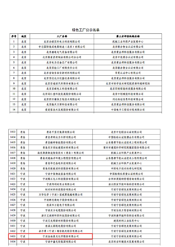 工信部日前公示2023年度國(guó)家綠色制造名單,寧波金海晨光化學(xué)股份有限公司(以下簡(jiǎn)稱:金海晨光)入選國(guó)家級(jí)“綠色工廠”公示名單。綠色制造體系是針對(duì)符合科學(xué)“綠色發(fā)展”倡導(dǎo)的企業(yè)給出的一種認(rèn)定,目的是深入實(shí)施綠色制造工程,加快構(gòu)建綠色制造體系,發(fā)揮綠色制造先進(jìn)典型的示范帶動(dòng)作用,從而實(shí)現(xiàn)產(chǎn)業(yè)全面升級(jí)和優(yōu)化。而國(guó)家級(jí)“綠色工廠”則是綠色發(fā)展榮譽(yù)的“天花板”,由縣、市、省各級(jí)工信部門按照“優(yōu)中選優(yōu)、寧缺毋濫”的原則層層選拔推薦。